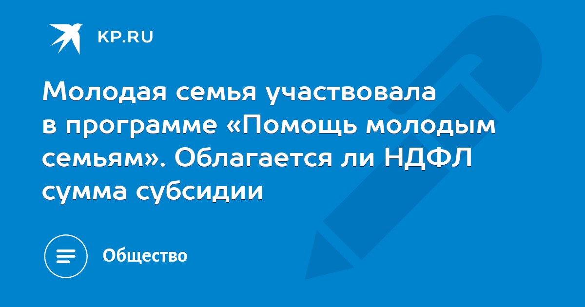 Молодая семья участвовала в программе «Помощь молодым семьям». Облагается ли НДФЛ сумма субсидии? Боркина Галина, Батайск. Согласно Федеральному закону от 29.11.2007 N 284-ФЗ c 1 января 2008 года статья 217 НК РФ дополнена пунктом 36, в соответствии с которым от налогообложения освобождаются суммы выплат на приобретение и (или) строительство жилого помещения, предоставленные за счет средств федерального бюджета, бюджетов субъектов РФ и местных бюджетов.
