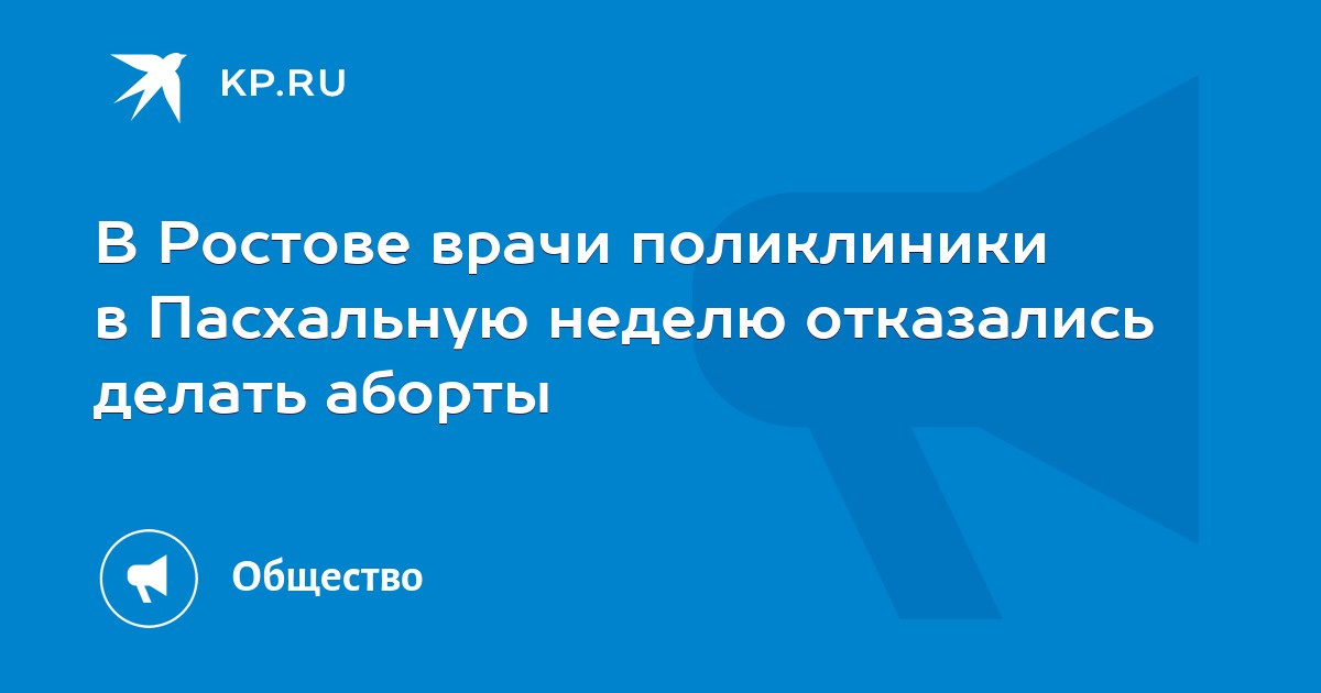 Со среды, 17 апреля, врачи ростовской поликлиники на десять дней отказались делать аборты своим пациенткам (здесь их, по статистике, проводят больше ста за год, - прим. авт.). Причина тому — религиозные соображения медиков, ибо сейчас идут дни светлой Пасхальной седмицы. Как рассказал «Комсомолке» духовник женской консультации, клирик Свято-Казанского храма иерей Дионисий Реуцкий, такая практика сложилась здесь уже второй год и охватывает собой дни празднования Рождества и Пасхи. А поликлиника — пока единственная, которая пошла навстречу такому предложению. В этом году срок акции увеличился на три дня. - Мы хотим, чтобы хотя бы в ближайшее время не было совершенно абортов, так как с точки зрения православной церкви - это убийство, - прокомментировал он «КП». - С точки зрения закона мы ничего не нарушаем, - ввели «КП» в курс дела в женской консультации. - Есть приказ Минздрава России, по которому аборт рекомендуется делать не в день обращения, а проводить обследование сроком до семи дней. То есть таким образом женщине дается время на обдумывание, чтобы это не было спонтанным решением. Если же женщина другой веры или аборт необходим ей по показаниям, то ее направят в стационар. В любом случае, без помощи она не останется. Известно, что пациенткам даже поставили стойку с литературой, которая рассказывает о вреде абортов и брошюры с расписанием традиционных молебнов о благополучном родоразрешении.