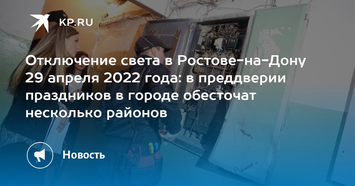 Отключение света в Ростове-на-Дону 29 апреля 2022 года: в городе запланировали обесточить сразу несколько районов города. Электричества в домах ростовчан не будет на протяжении нескольких часов.