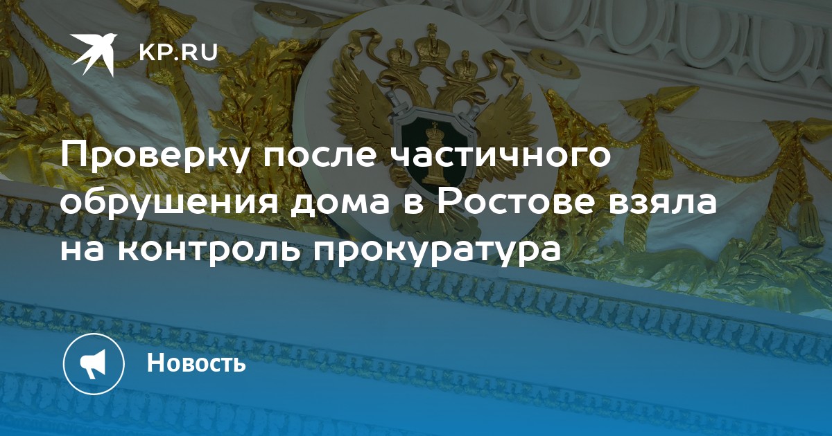 Проверку после частичного обрушения частного дома на улице Калинина в Ростове-на-Дону взяла на контроль прокуратура. Об этом сообщили в пресс-службе надзорного ведомства.